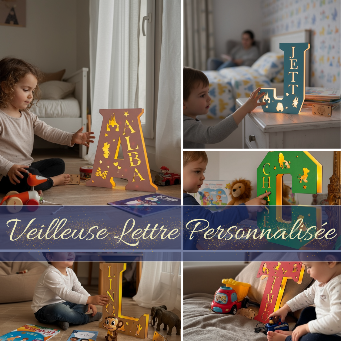 Des veilleuses artisanales en bois, fabriquées avec amour pour accompagner les nuits de vos petits trésors.