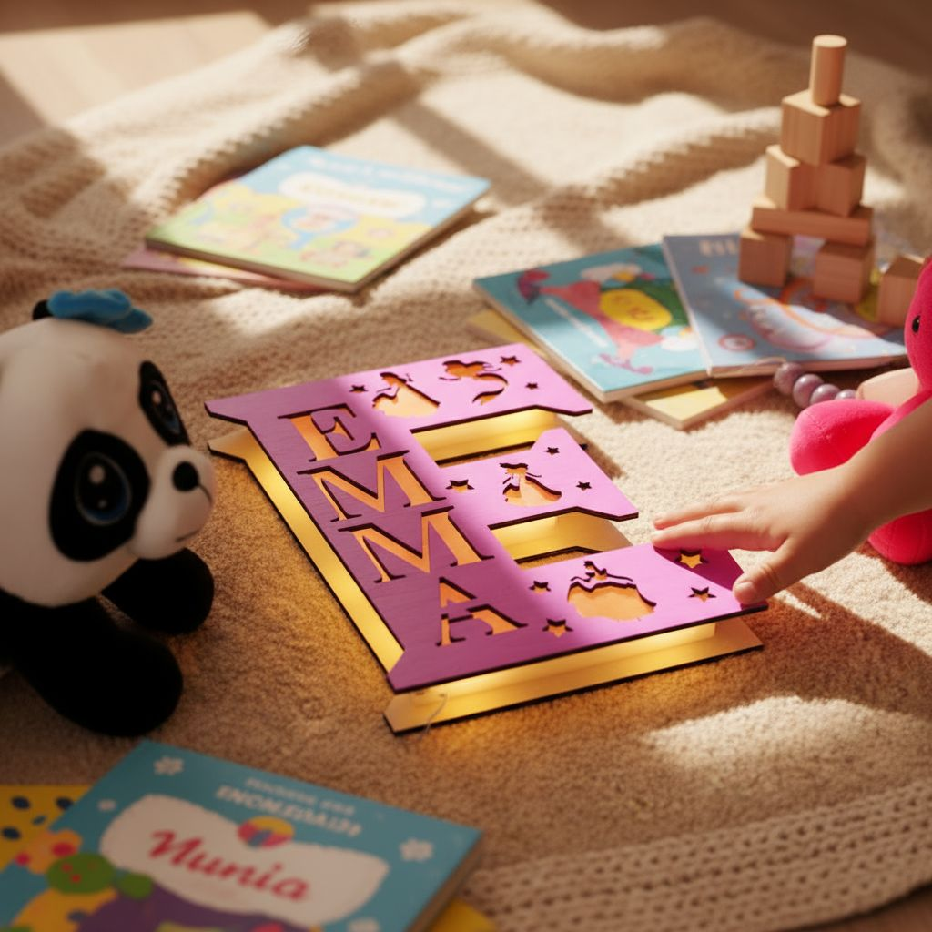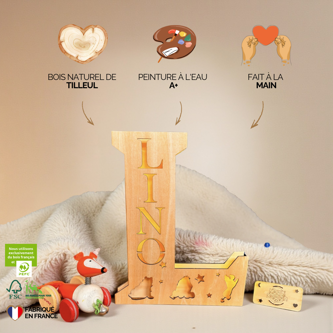 Personnalisée au prénom de votre enfant, elle devient son repère du soir, une présence qui murmure : “Tu n’es pas seul.”