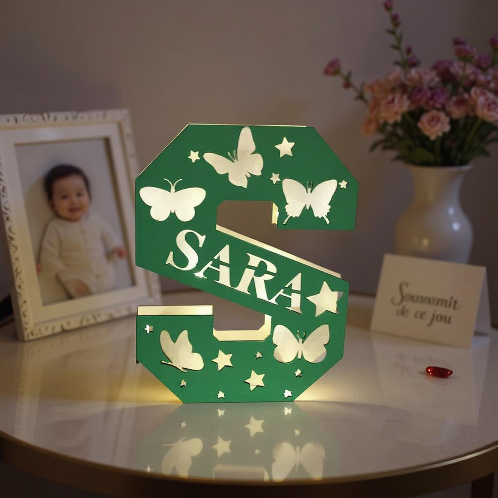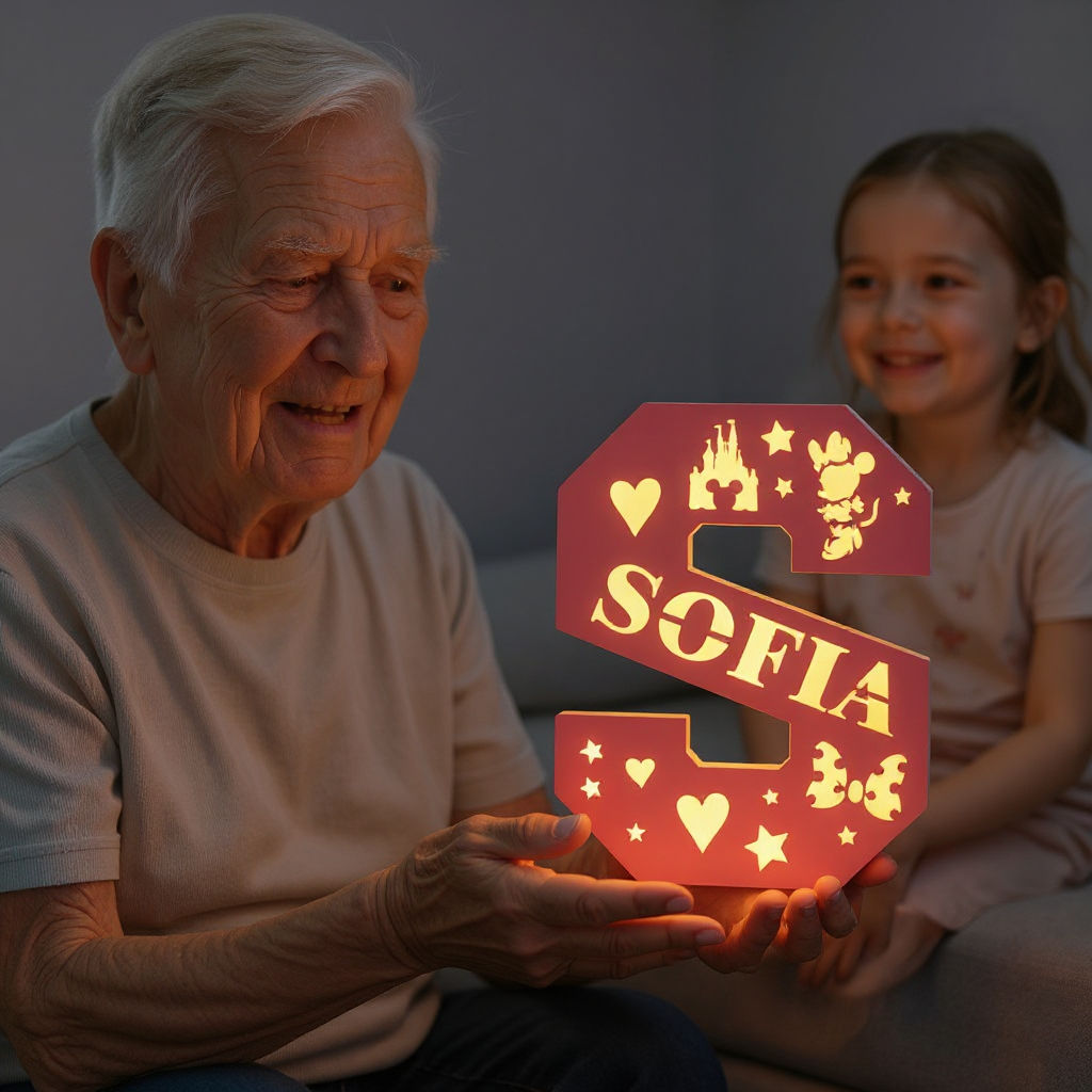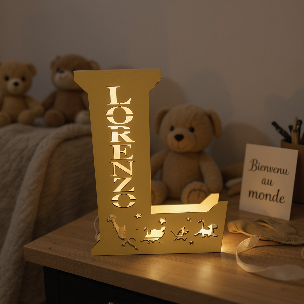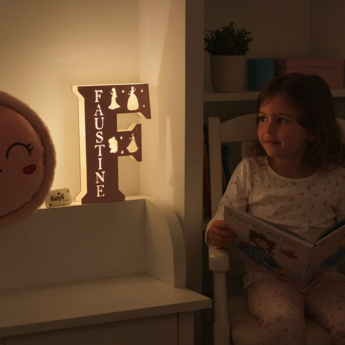 Une veilleuse unique à personnaliser, où chaque lettre révèle les formes de ses contes préférés, pour illuminer ses plus beaux rêves.