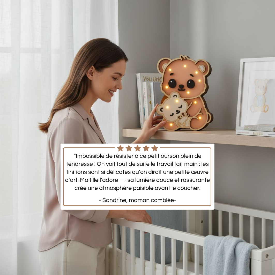 Nos veilleuses peuvent être posées directement sur un meuble pour diffuser une douce lumière, ou fixées au mur grâce à un kit d’installation adapté (vendu séparément).