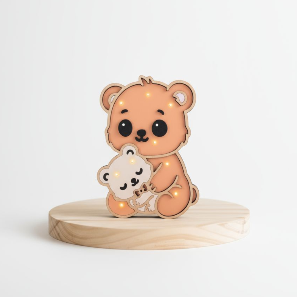 Nos veilleuses sont fabriquées à partir de bois de peuplier et de MDF certifié E1, un matériau à très faibles émissions répondant aux normes européennes les plus strictes.