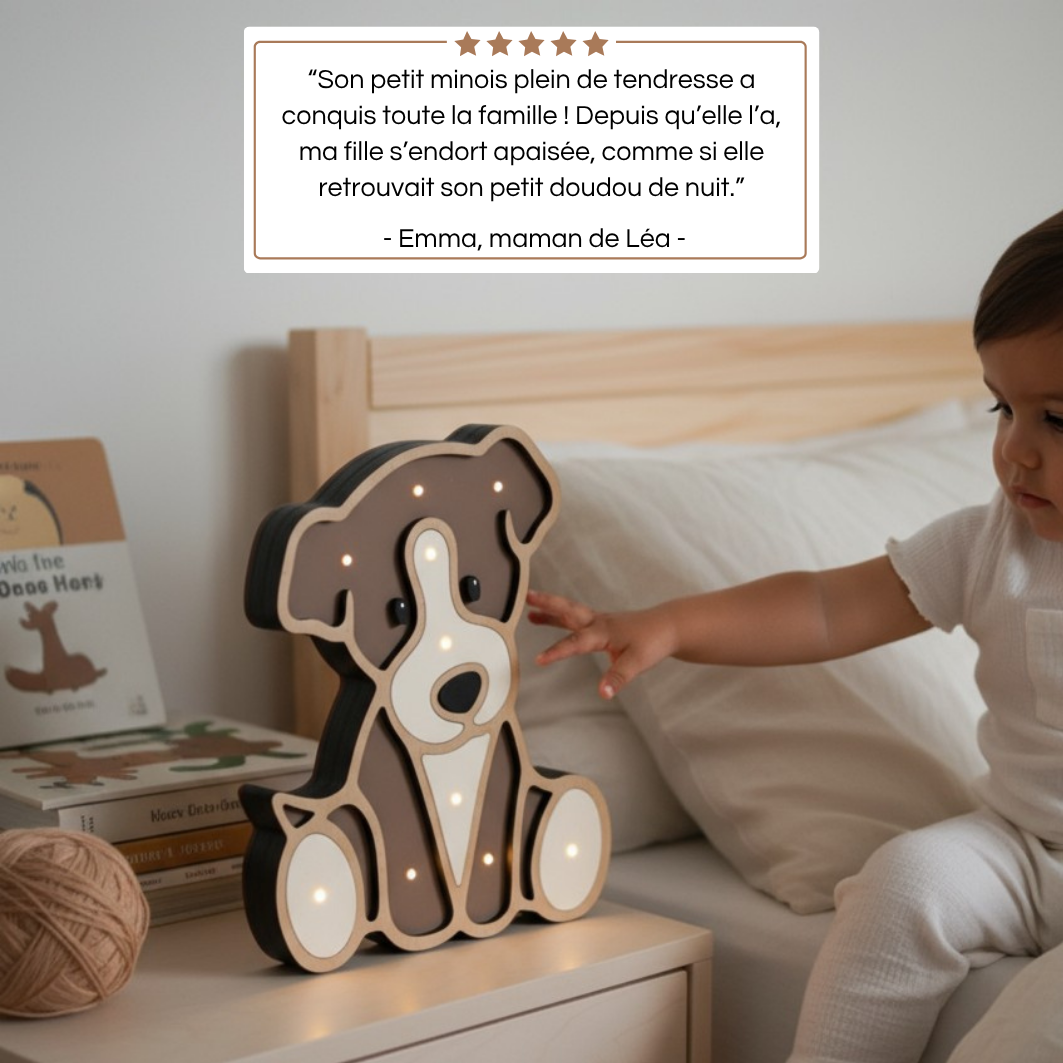Sa lumière délicate crée une ambiance calme et réconfortante. Elle aide votre enfant à s’endormir paisiblement, sans crainte du noir.